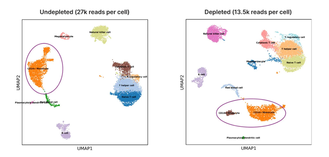 使用crisprclean single cell rna boost kit,转录组的读数增加100%。